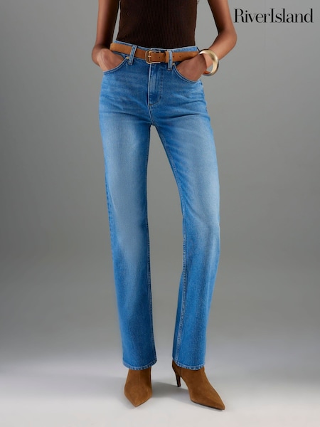 أزرق فاتح 1 - River Island High Waisted Relaxed Straight Jeans