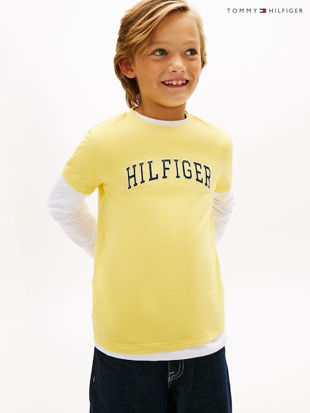 أصفر - تيشرت جيرسي بياقة مستديرة مع شعار من Tommy Hilfiger