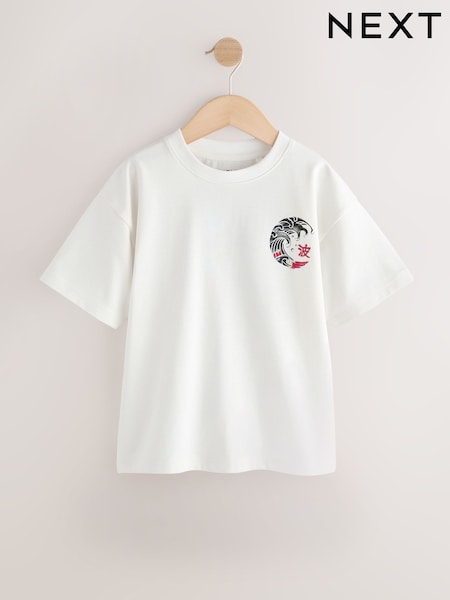 طبعة موجة كريمية على الظهر - تي شيرت برسمة كم قصير (3 - 16 سنة)