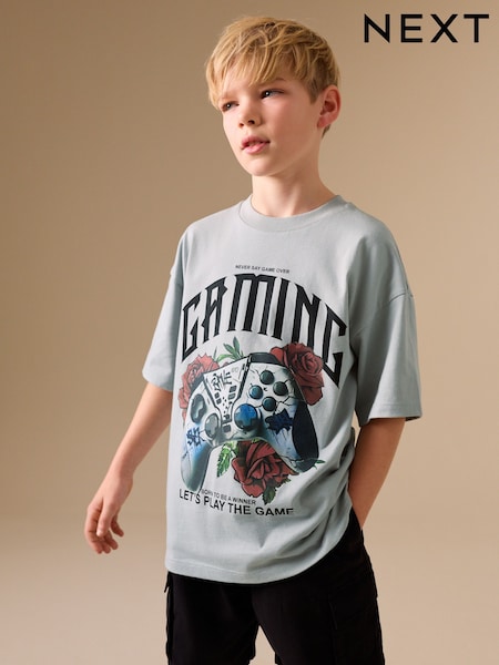 رمادي Gaming - تي شيرت برسمة كم قصير (3 - 16 سنة)