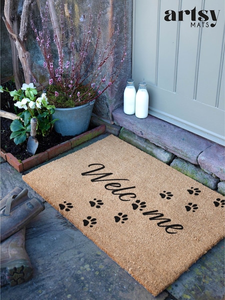 دواسة باب بعبارة Welcome من Artsy Mats بنقشة كلب النقانق
