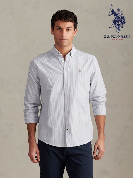 أزرق - U.S. Polo Assn. قميص أكسفورد رجالي من القطن 100%