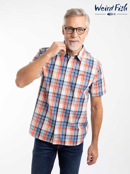 لون كريم فاتح - قميص Judd نقش مربعات بكُم قصير من Weird Fish