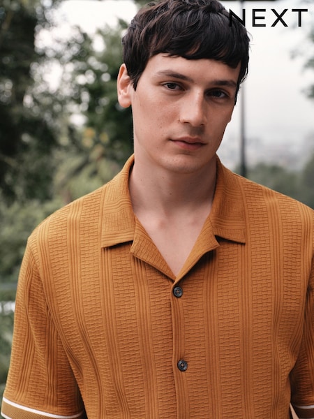 أصفر شاحب - قميص جيرسيه بملمس بارز بكُم قصير وحواف متباينة