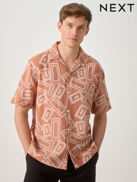 نقشة هندسية برتقالية - قميص مطبوع كم قصير