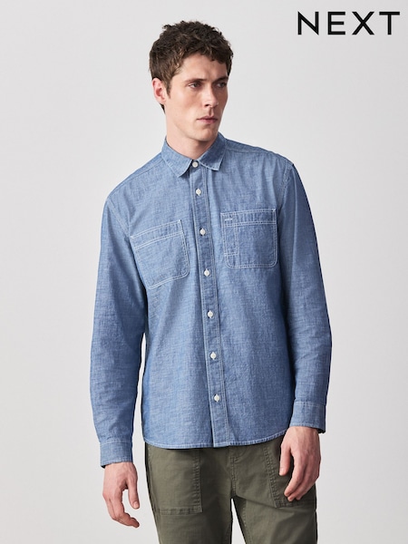 أزرق شامبراي - Denim Pocket Long Sleeve Shirt