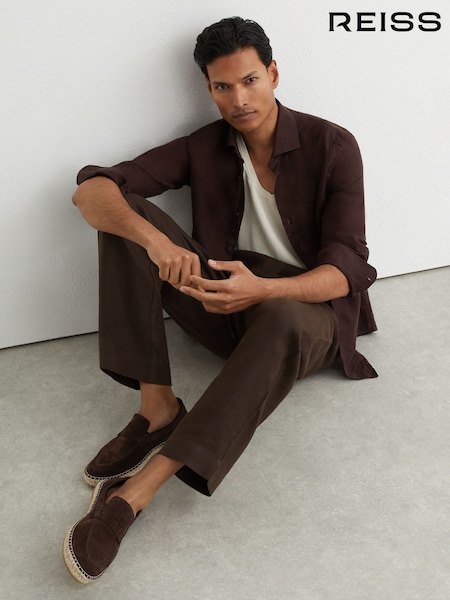 بني - Reiss Capri Suede Penny Loafer Espadrilles