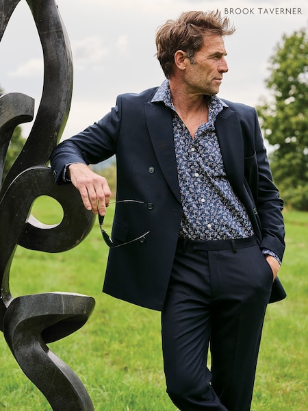أزرق - عادي - سترة بدلة بصدر بصفين من الأزرار من صوف ممزوج من Brook Taverner