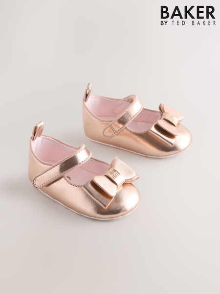 ذهبي وردي - حذاء أطفال مبطن بتفصيل فيونكة من Baker by Ted Baker