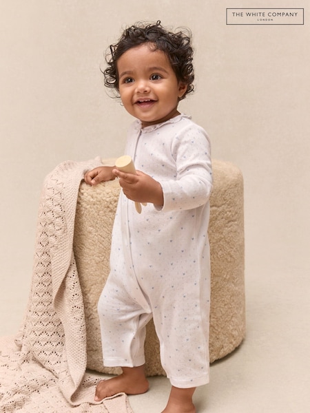 The White Company Cotton Heart Pointelle Frill Collar Sleepsuit