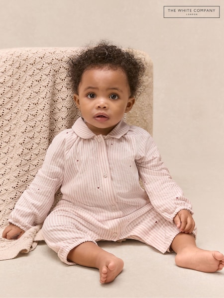 The White Company Cotton Cherry Embroidered Sleepsuit