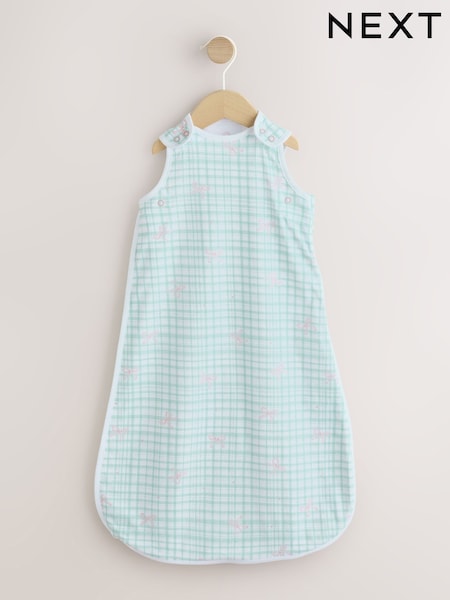 أخضر/وردي بنقش مربعات مع فيونكة - كيس نوم للبيبي بلا أكمام بمعدل دفء 0.5