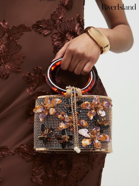 حقيبة تصميم دلو من جلد سويدي صناعي مرصعة من River Island