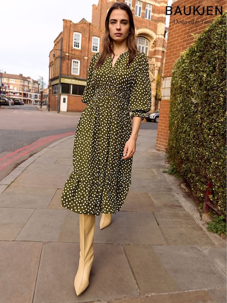 أخضر ـ فستان متوسط الطول مطبوع Christine من Baukjen