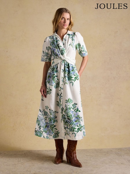 أبيض Provence - فستان متوسط الطول من القطن موديل Billie من Joules
