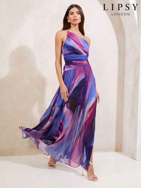 وردي - فستان ماكسي بكتف واحدة مزيّن بفيونكة من Lipsy
