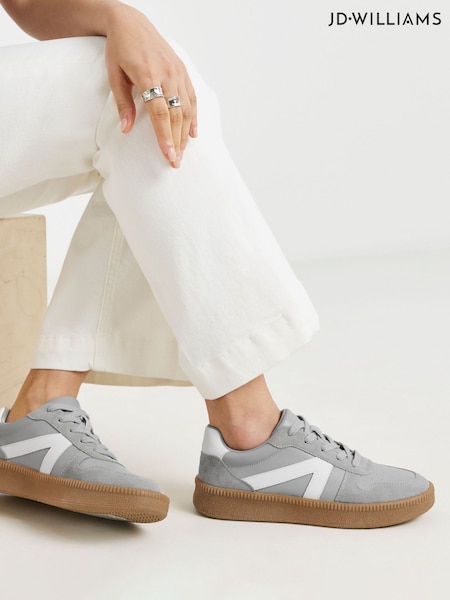 رمادي - JD Williams Leather Retro Trainers