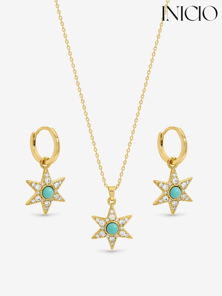 طقم ثلاثي عيار 14 قيراط بتصميم نجمة مرصَّع بحجر فيروز طبيعي من Inicio