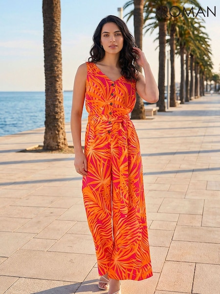 لباس قطعة واحدة بحزام بطبعة نخيل من Roman