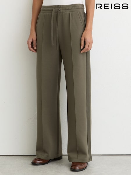 كاكي أخضر - بنطلون رياضي برِجل واسعة من نسيج متداخل فاخر Bella من Reiss