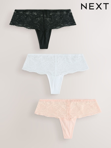 أسود/وردي/أبيض - حزمة من 3 سراويل داخلية من الدانتيل