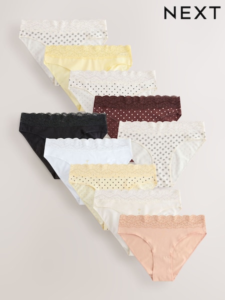 أصفر/أبيض - عبوة مكونة من 10 سراويل داخلية قطنية بتغطية كاملة