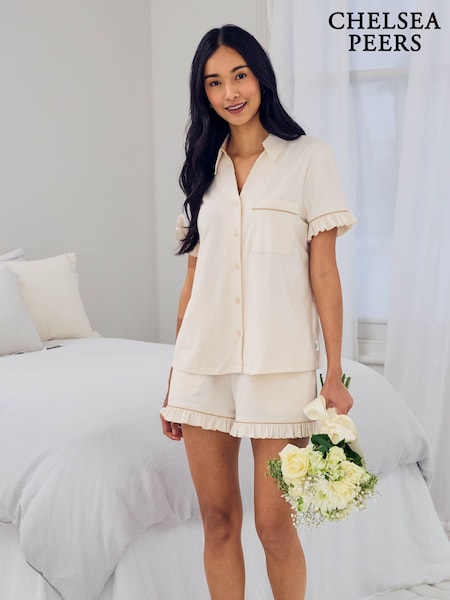Chelsea Peers Cotton Embroidered Just Married Frill Short Pyjamas Set