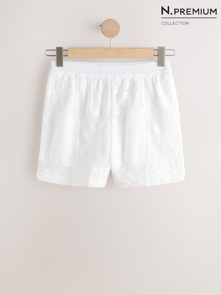 أبيض - شورت كروشيه بتصميم رقع من N. Premium