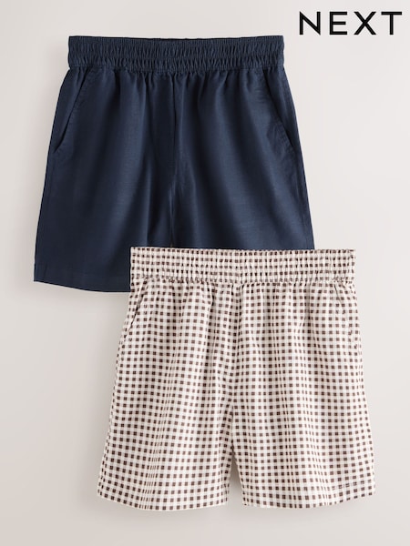 كحلي/شوكولاتة تصميم مربعات - حزمة من 2 شورت مزيج كتان قابل للتمدد