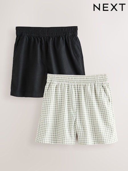 أسود/أخضر تصميم مربعات - حزمة من 2 شورت مزيج كتان قابل للتمدد