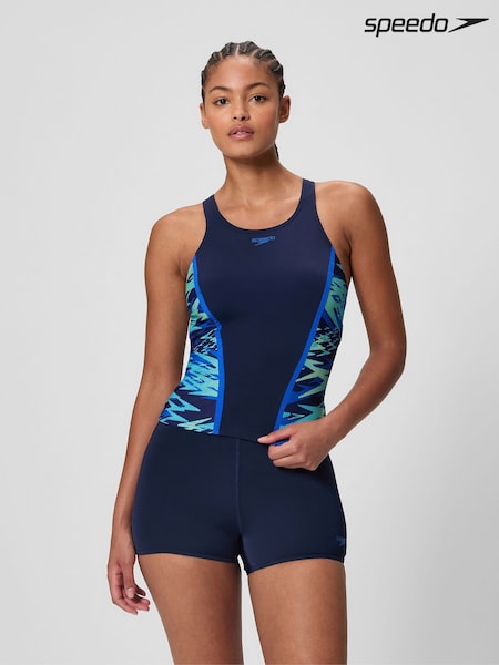 أزرق - بدلة سباحة نسائية لشد القوام بطبعة Luna Elustre من Speedo