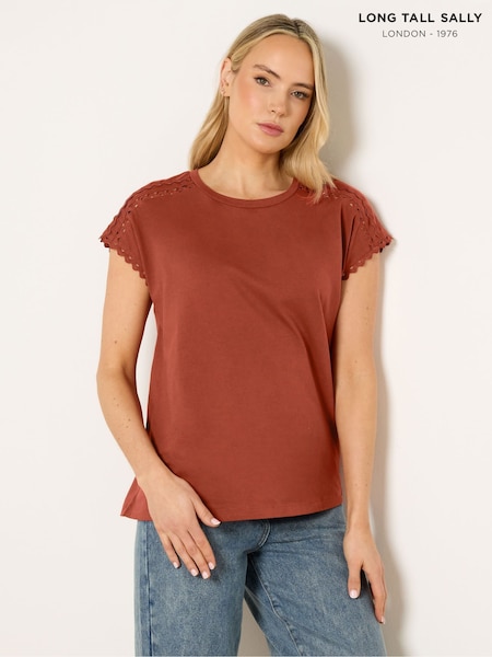بني - تيشِرت رياضي من نسيج متداخل فاخر من Long Tall Sally