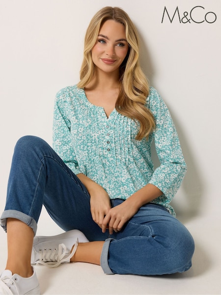 أخضر - رداء عُلوي بـ 3/4 كُم برقبة صغيرة وطبعة زهور صغيرة من M&Co