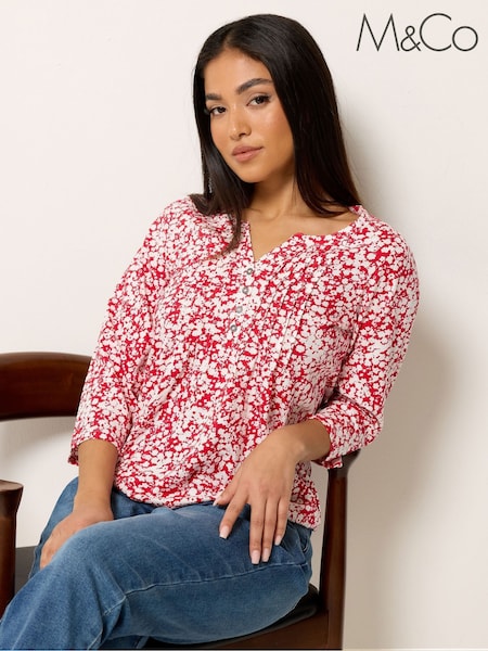 أحمر - بلوزة Henley قطنية بأكمام قصيرة من M&Co