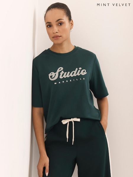 أخضر - بلوزة محبوكة بتفاصيل الوشاح من مزيج القطن من Mint Velvet