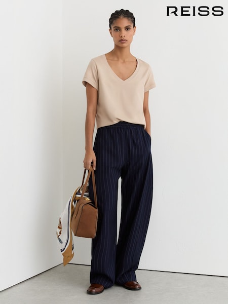 وردي - تيشِرت قطن ممشط بفتحة ياقة على شكل حرف V تصميم Luna من Reiss