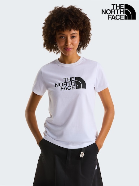 أبيض - تيشرت بأكمام قصيرة بتلبيس رشيق موديل Evolution Half Dome للسيدات من The North Face