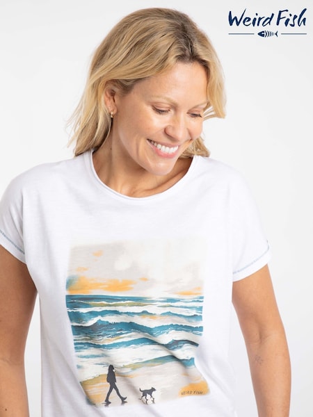 أبيض - Weird Fish Walking Club Front Print Graphic T-Shirt