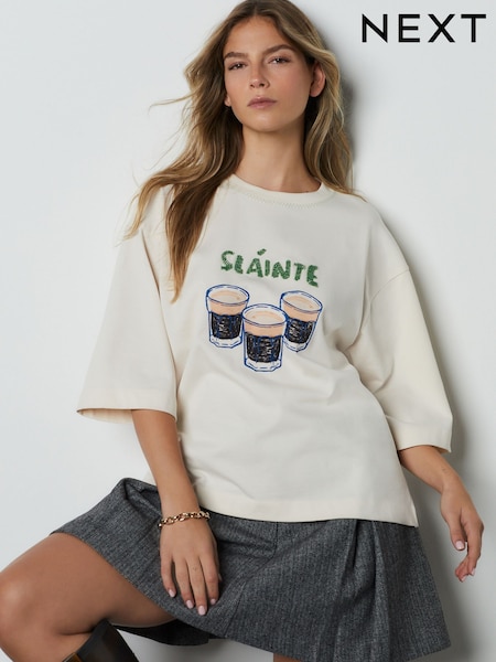 بيج فاتح - تيشرت بأكمام قصيرة بطبعة يوم القديس باتريك