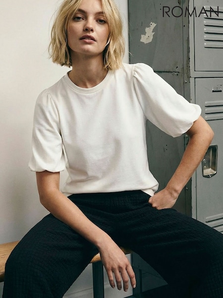 أبيض - تيشِرت بكُم منفوخ قابل للتمدد من Roman