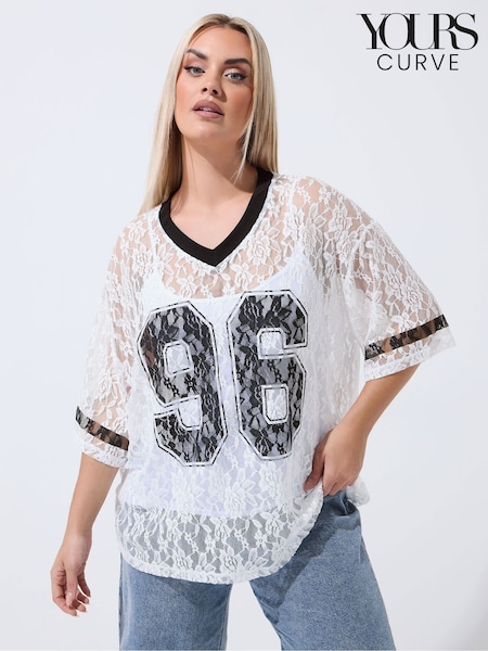 Yours Curve Limited Lace Printed V-Neck Top
