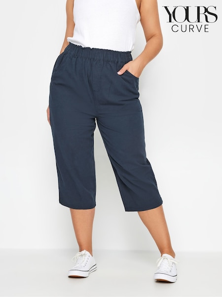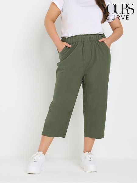 لون طبيعي - بنطلون كتان برِجل واسعة سهل الارتداء من Yours Curve