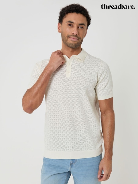 كريم - قميص بولو محبوك مخطط بارز الملمس من Threadbare