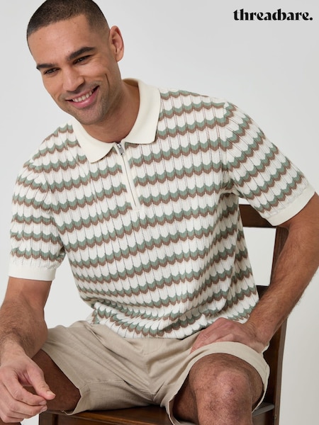 كريم - Threadbare Cable Stripe Knitted Button Polo Shirt