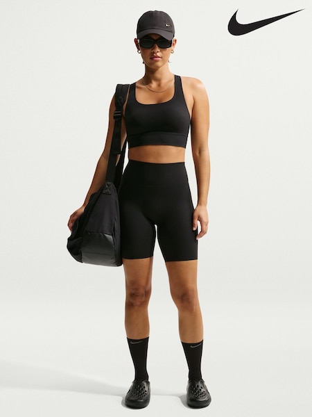 كحلي داكن - حمَّالة صدر رياضية مبطّنة توفر دعم متوسط بشعار Swoosh من Nike
