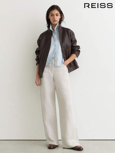 لون محايد - بنطلون برِجل واسعة من مزيج لايوسيل وكتّان Carmen من Reiss