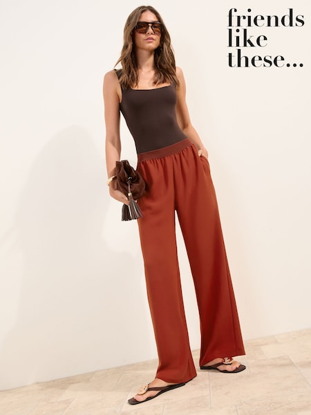 بني مائل للأحمر - بنطلون برِجل واسعة بخصر قابل للتمدد من Friends Like These