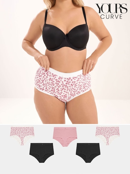 Yours Curve Pink High Leg Briefs 5 Pack