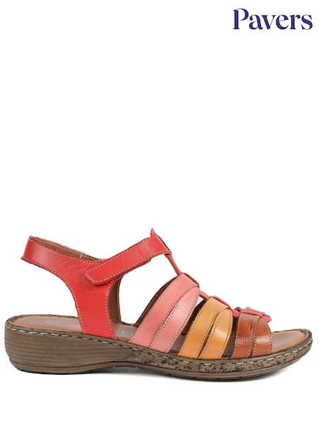 Pavers Red Multi Premium Leather Adjustable Fasten Sandals
