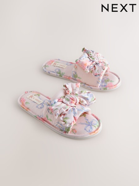 Pink Floral Satin Slider Slippers